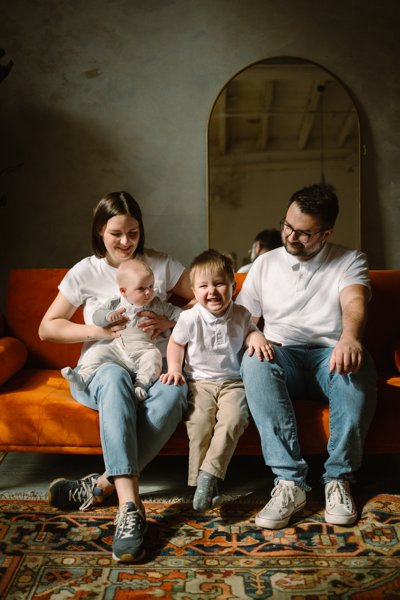 Na sesji stawiam głównie na kontakt, naturalność i dobrą zabawę. Zależy mi, byście czuli się swobodnie, a nie byście ustawili się w konkretny sposób. Oczywiście podpowiem, zamienię Was miejscami czy podsunę to, co może wyglądać dobrze – jeśli jest na to przestrzeń. Ale raczej podsunę co możecie zrobić, zaproponuje wspólną aktywność, bo kluczem do ujęć które pokazują autentyczną radość i to, że dobrze się ze sobą czujecie (bo przecież po takie zdjęcia przychodzicie) jest to, byście na sesji naprawdę dobrze się bawili. Przełóżmy nacisk z poprawiania kosmyków i kołnierzyków na autentyczny uśmiech i błysk w oku, a zobaczymy magię.